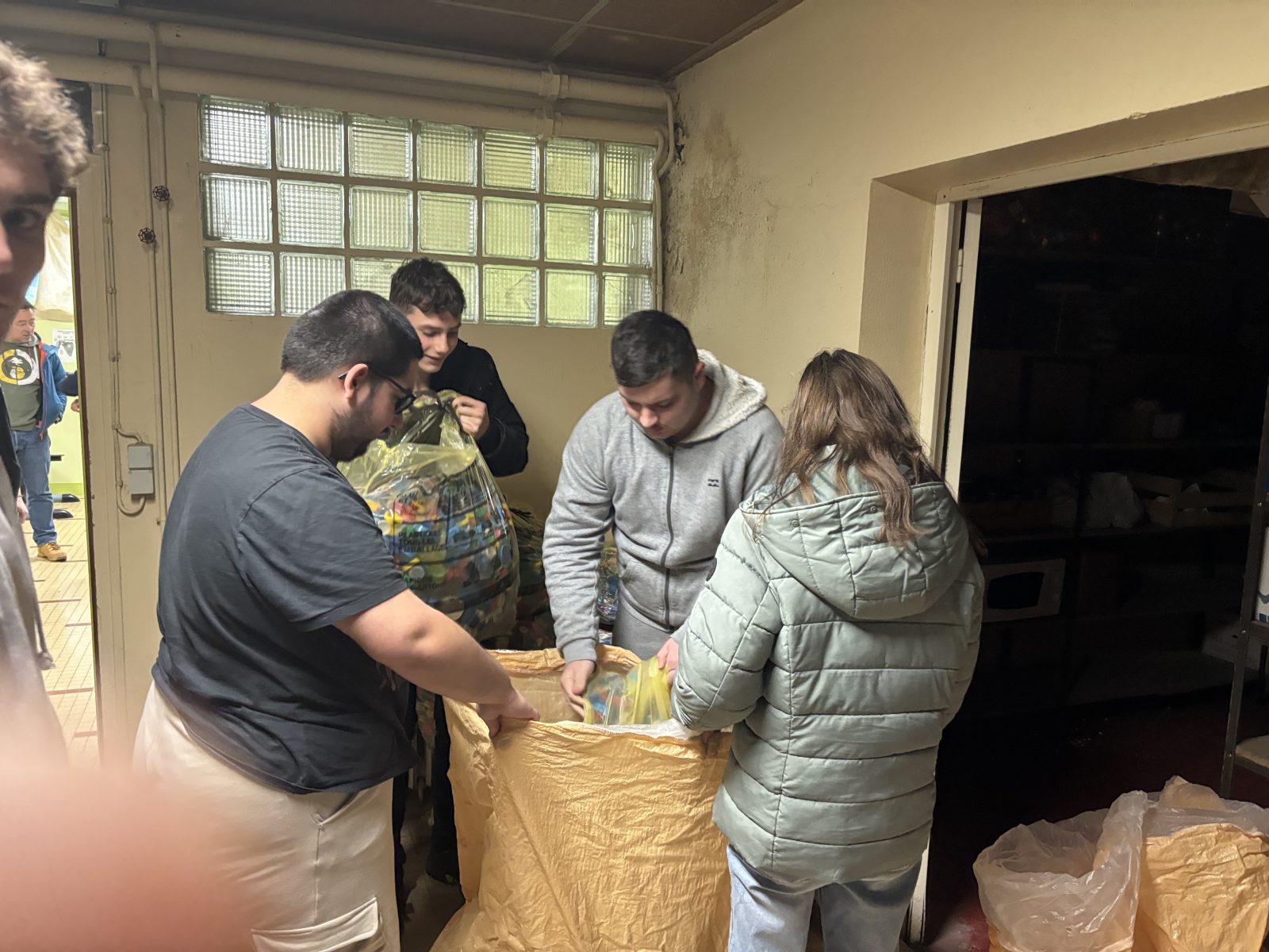 ➡️ 14 poches jaunes de 50 litres de bouchons collectés.